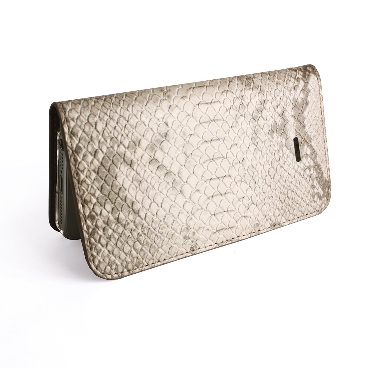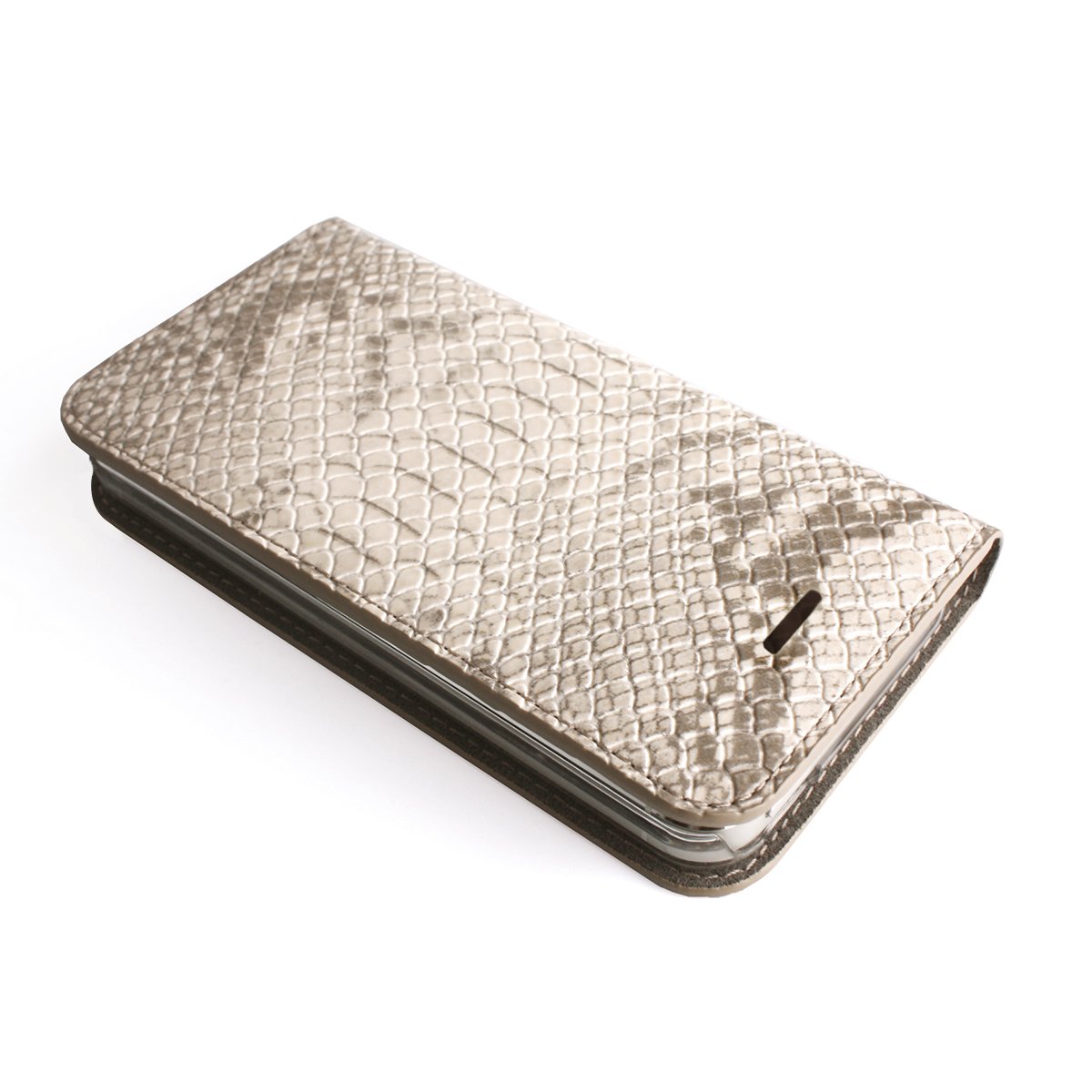 GAZE's "Milk Snake Diary" is a diary-type smartphone case that gives natural cowhide a stamped pattern of python (snake) and further enhances the sense of quality with enamel coating.