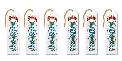 Beistle AR808 White Birthday Blessings Ribbons, 2 by 8-Inch, 6-Pack