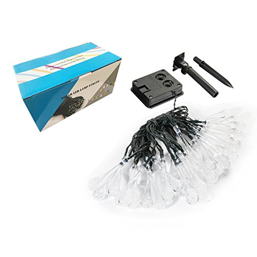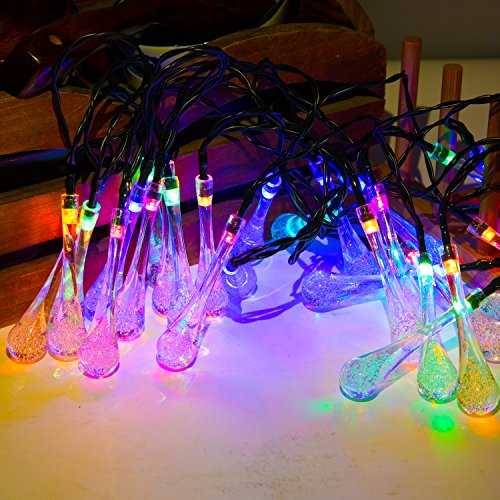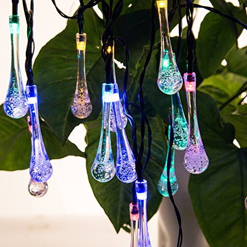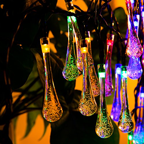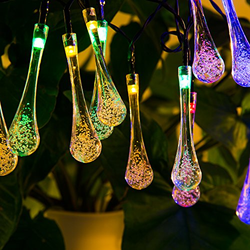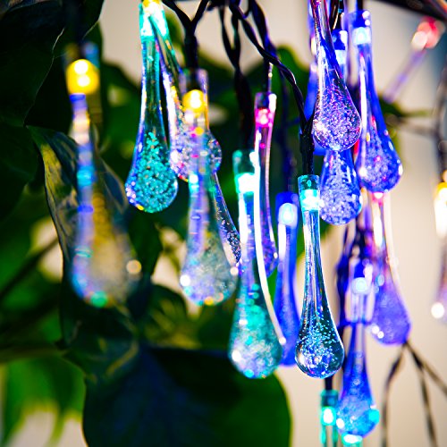 Icicle Solar Outdoor String Lights 20ft 30 LED Water Drop Solar String Waterproof Lights Christmas String lights for Garden, Patio, Yard, Home, Christmas Tree, Home Parties (Multi)