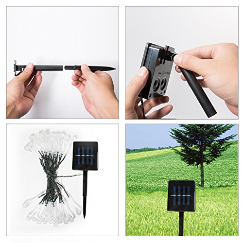 - This 20ft 6m long LED solar string provides fairy lighting effect. The whole light is waterproof, suitable for outdoor use, no worry for rain drops. Automatically & waterproof: With IP65 waterproof grade, the solar panel with a light sensor, if the switch keep on, the string lights automatically lit up at night.