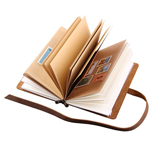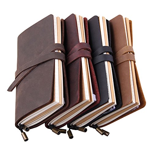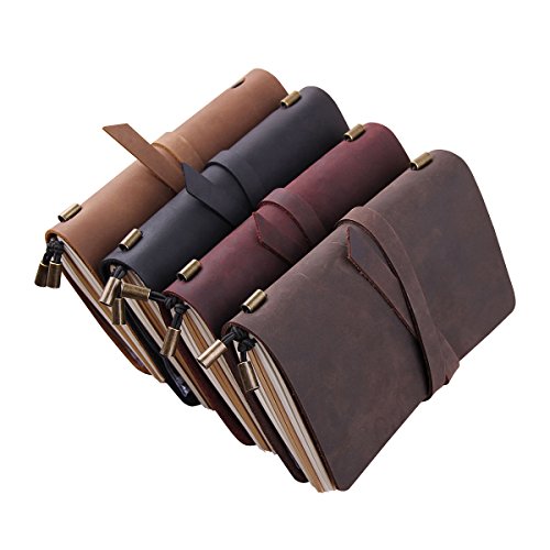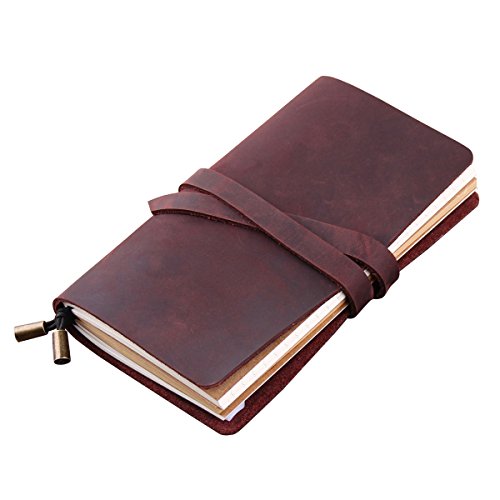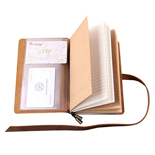 -. Feature : Each notebook made completely by hand without the use of machinery. / The leather covers were made of high quality genuine leather, available in 4 color: Black, Brown, Coffee, Wine. / Includes 3 refills notebooks (1 white + 1 kraft + 1 lined, each refill has 32 pages, 64 sides); and 1 PVC pouch & card holder (1 zipper pouch + 1 large compartment + 2 card slots) / Journal Size: 17 x 10cm; Refill Size: 16.5 x 9.5cm / Beautiful gift box packaged, it is a wonderful gift for a traveler or writer.