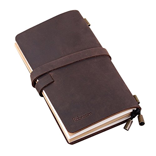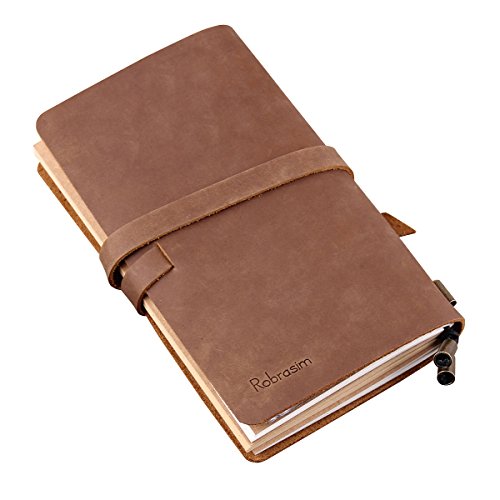 -. Title : Robrasim Vintage Handmade Leather Daily Notepad - Refillable Leather Journal Writing Notebook for Men & Women - Medium Size 17x10cm