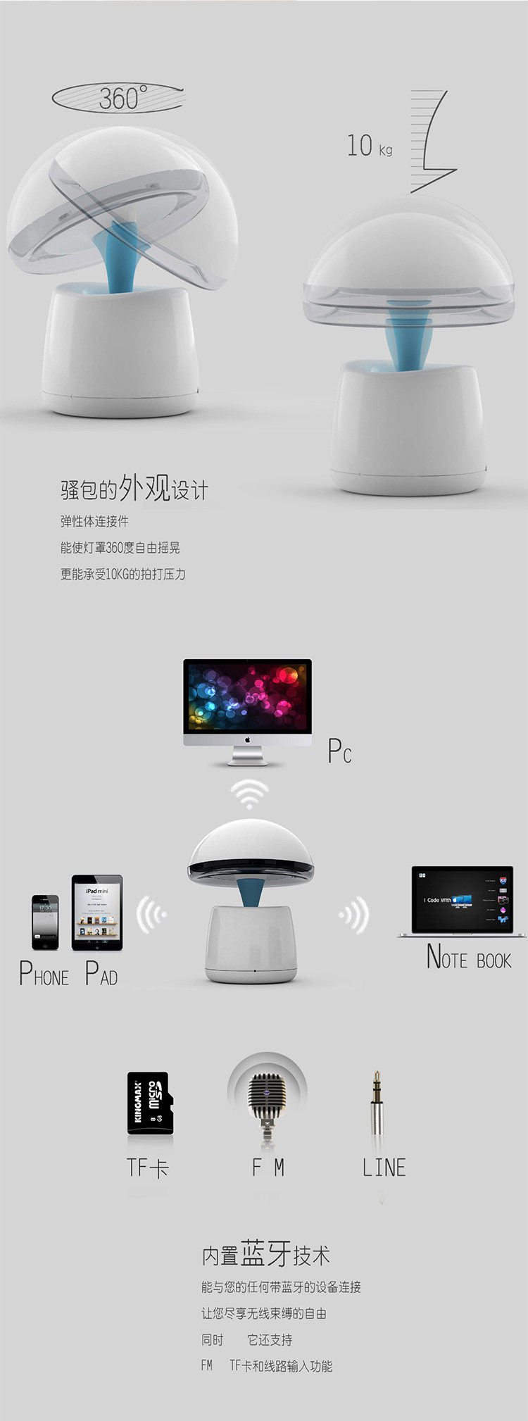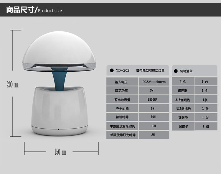 Product size: 15 * 15 * 20cm Material: ABS + PMMA Built-in Bluetooth technology, you can connect with any Bluetooth-enabled device, so you can enjoy the freedom of wireless bondage, also it supports FM, TF and line input.
