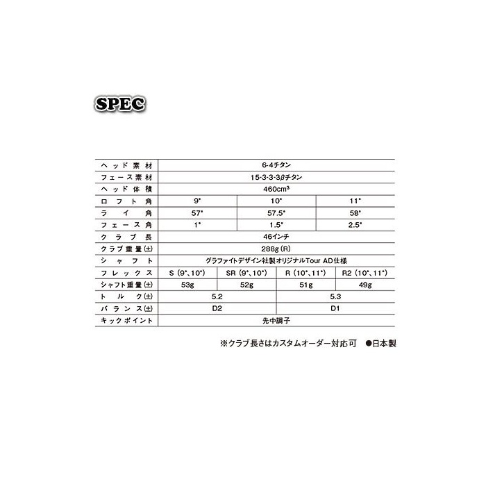샤프트:그라파이트 디자인사제 오리지날TourAD사양