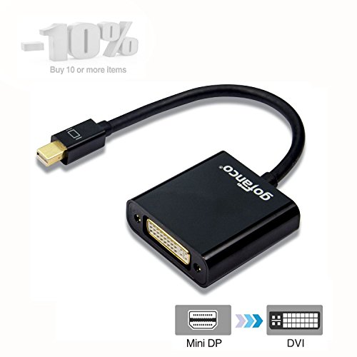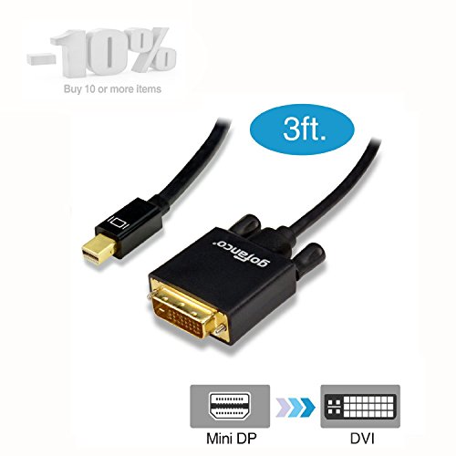 gofanco® 10ft Mini DisplayPort to DVI Adapter Cable connects Mini DisplayPort compatible devices such as Apple MacBooks, and Microsoft Surface tablets, Ultrabooks and laptops with a Mini DisplayPort output to DVI equipped monitors, displays and HDTVs. It can support displays of up to 1080p HDTV or 1920 x 1200 PC graphics and is ideal for your office, home entertainment display, conference rooms, and more.