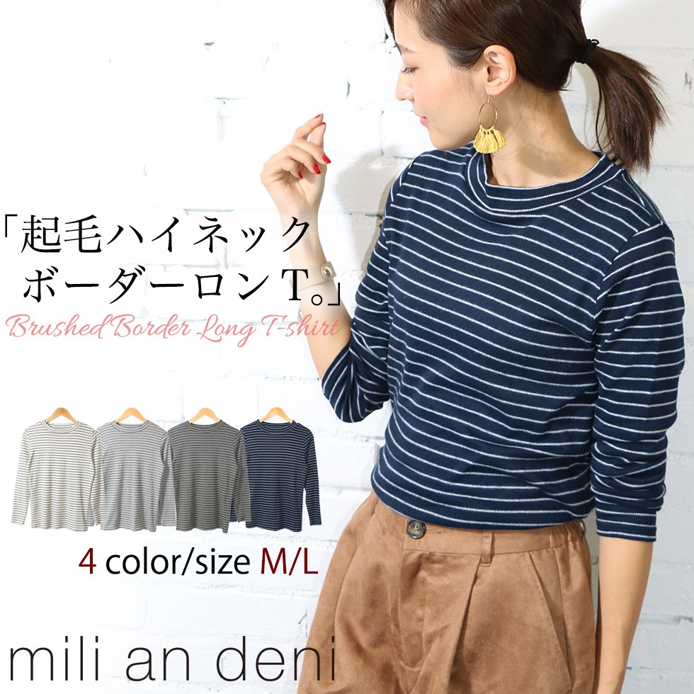 商品名:起毛ハイネックボーダーロンT