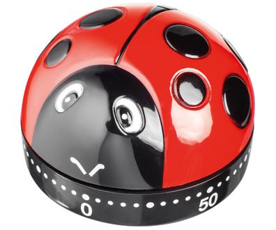 -. Feature : Novelty ladybird Kitchen Timer, 60 min / clear ringing alarm / no need for batteries / Gift Boxed / Size; 6 x 6 x 4cm / 2.25 x 2.25 x 1.5"
