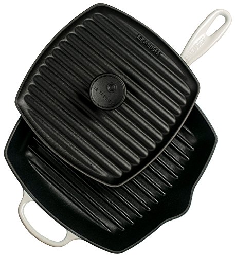 르쿠르제 Le Creuset Cast Iron Panini Press and서명 스퀘어 스키렛트(후라이팬요리) 그릴 세트,101/ 4인치,화이트