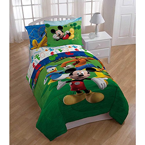 Studio : Disney Publisher : Disney Product Description This Mickey Clubhouse Twin Comforter is perfect for any Disney fan! Mickey, Goofy, and Donald Duck are all front and center with a vibrant green background. This twin comforter comes with a matching sham . Comes with a sham . Super soft microfiber fabric 0
