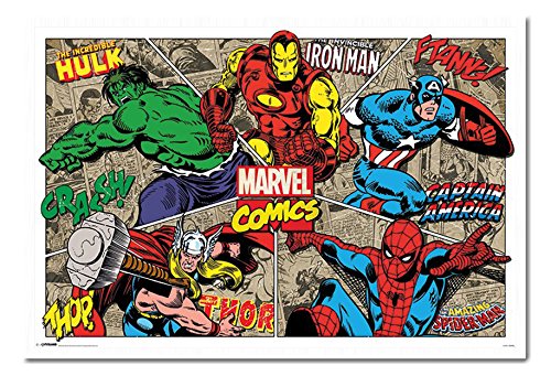 -. Title : Marvel Comics Character Burst Poster Magnetic Notice Board White Framed - 96.5 x 66 cms (Approx 38 x 26 inches)