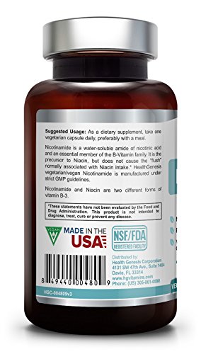 ADVANCED & TESTED FORMULA: The Health Genesis Flush Free Nicotinic Amide Niacin dietary supplement is carefully formulated and manufactured by health experts under strict GMP health and safety guidelines in our NSF certified state-of- the-art facility in the USA.