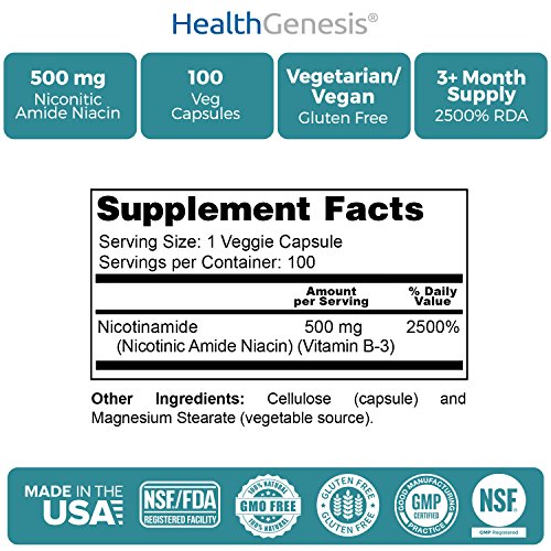 SUPPORT YOUR SKIN HEALTH NATURALLY: Health Genesis Nicotinamide Vitamin B-3 dietary supplement is a unique form of Niacin, also known as Nicotinic Amide Niacin. Studies suggest that this unique form of Niacin supports healthy skin and may also offer support to the body's natural defense mechanisms initiated when there is a lack of this vital nutrient! *