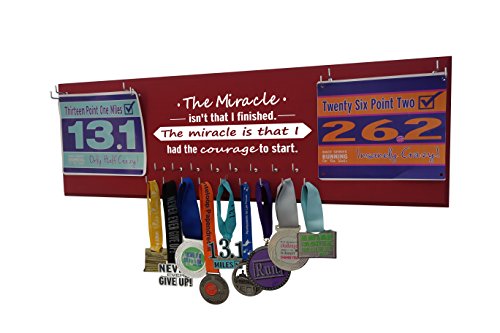Running on the Wall Medal Hanger Display and Race Bibs "THE MIRACLE ISN'T THAT I FINISHED, THE MIRACLE IS THAT I HAD THE COURAGE TO START" Double Race Bib Design
