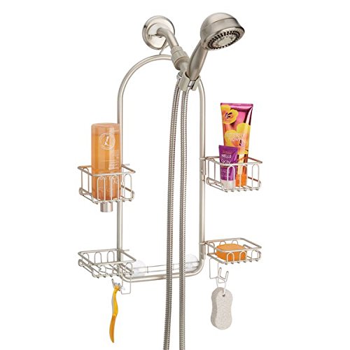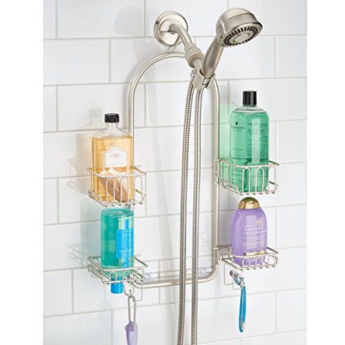 Studio : MetroDecor Publisher : MetroDecor Product Description The mDesign Adjustable Shower Caddy features four baskets that swing out for customized storage. Store tall bottles of soap, conditioner, shampoo or shaving cream in the tall basket and smaller items in the lower baskets. Two hooks provide extra storage for razors and loofahs. Top shelves have holes to store bottles upside down for easy pouring. 0