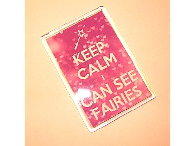 Keep Calm I Can See Fairies Magnet - Red with Magic Wand - 3 x 2 inches with COA