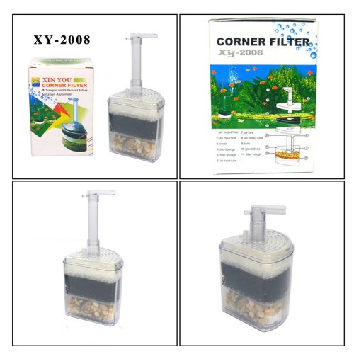 Corner Filter Aquarium Fish Tank Internal Air Driven Filter with Media XY-2008