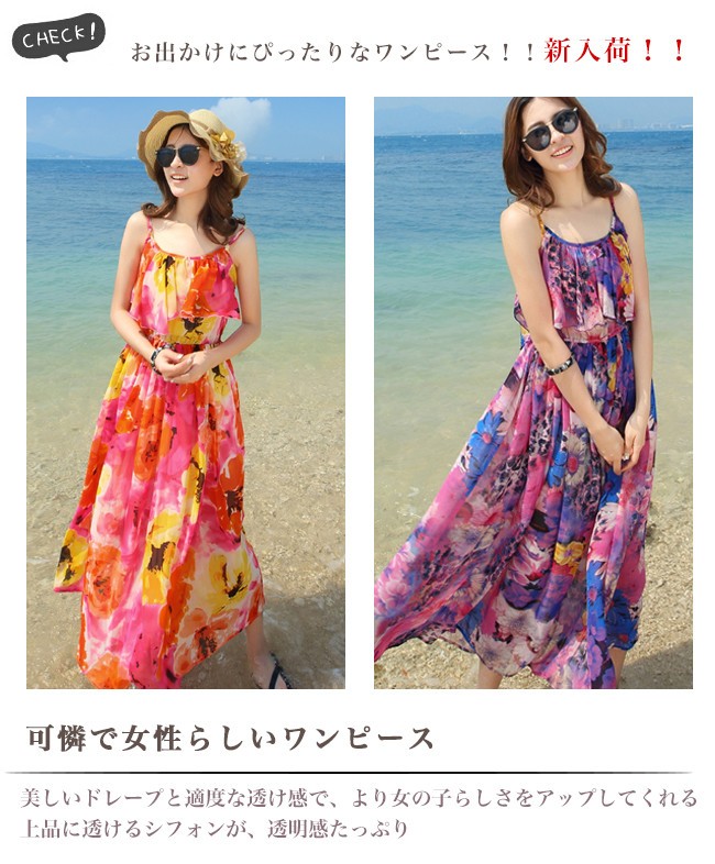 リゾートのキブンを楽しみたいなら、ロマンチックなムードが漂うビーチワンピースはイチオシ♪