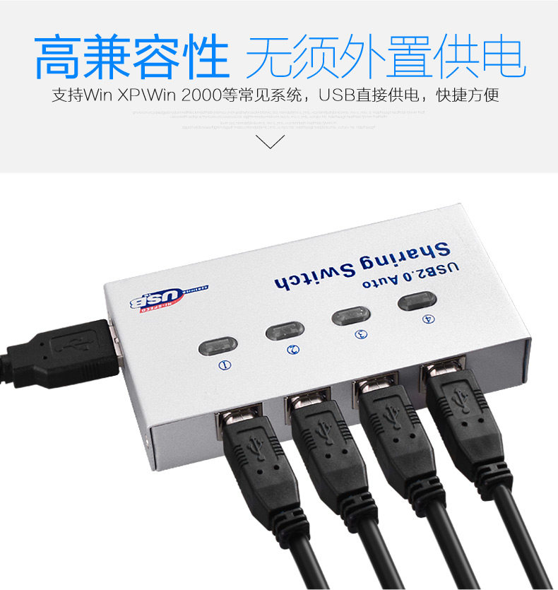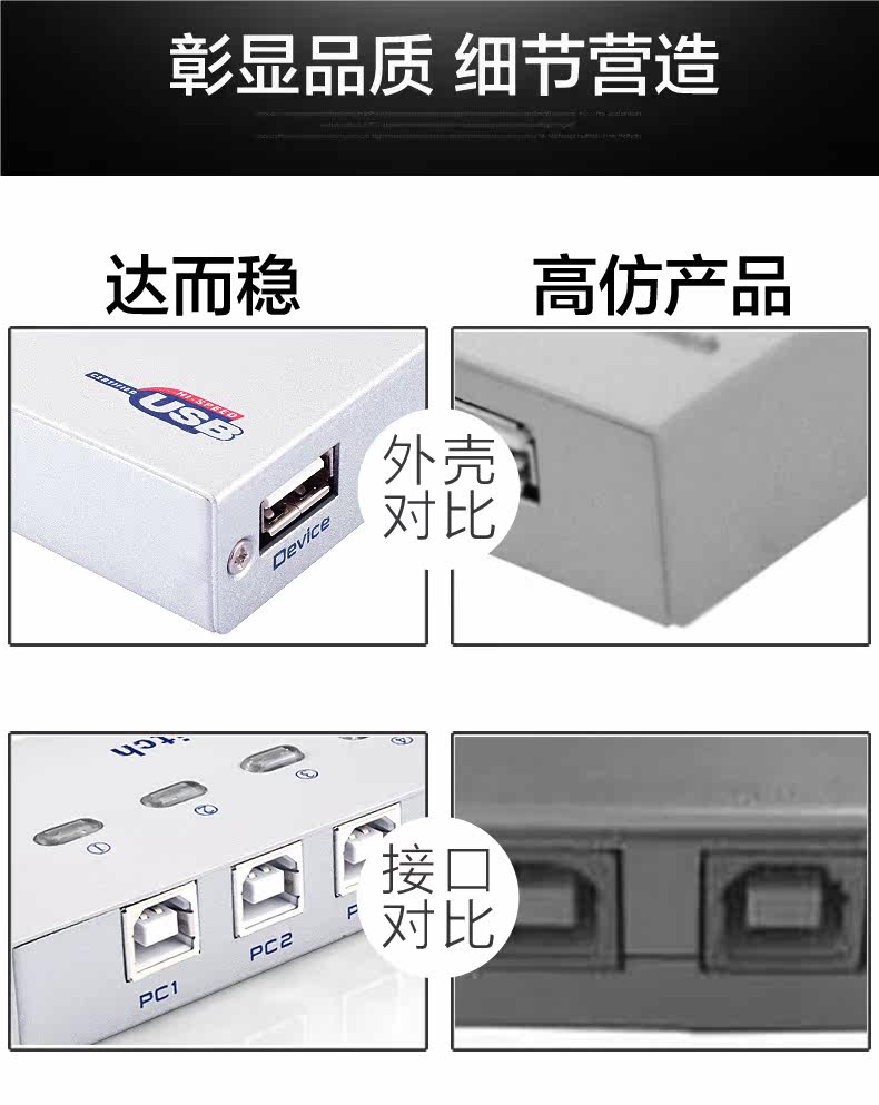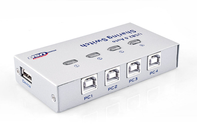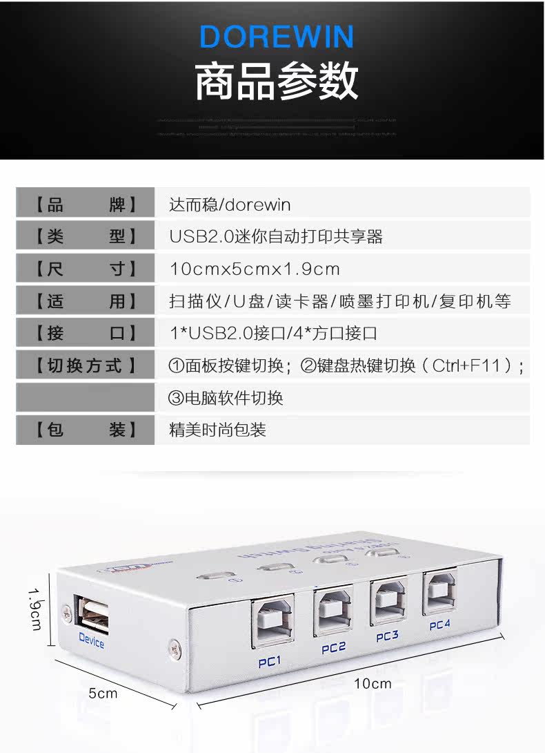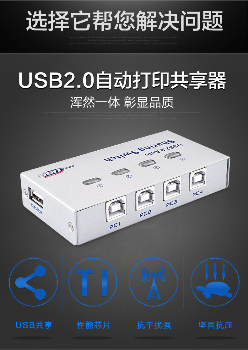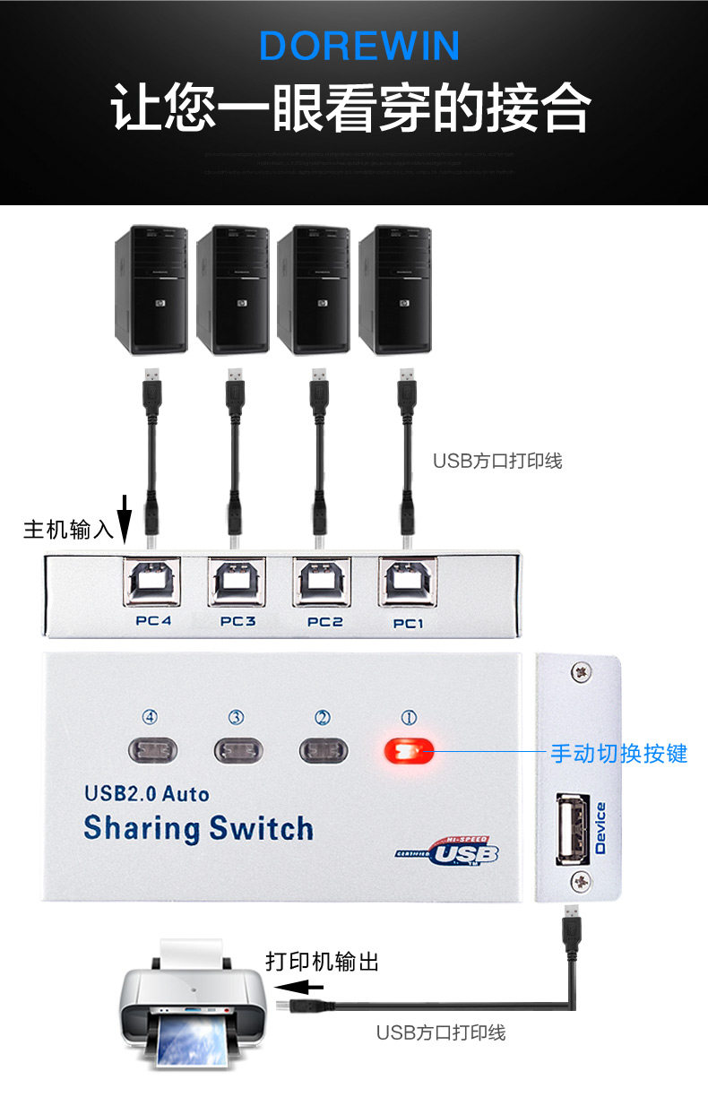 达而稳 USB打印机共享器多电脑四进一出自动切换器键盘鼠标一拖四