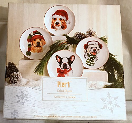 (Pier One)/Kitchen Dining/Tableware/DIRECT FROM USA/New 4pc Pier One Puppies Dogs in Winter Attire Salad Dessrt Appetizer Plates 8"
