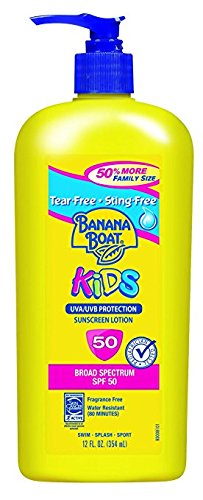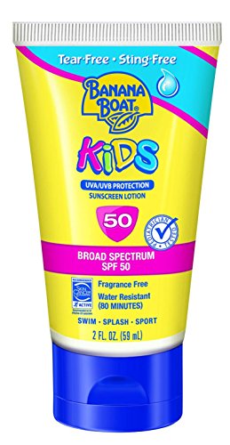 Banana Boat Kids Sunscreen Lotion contains Titanium Dioxide, recommended for children's sensitive skin for broad spectrum UVA and UVB protection from sunburn and skin damage. The gentle formula is long-lasting and very water resistant to keep up with active kids. The convenient pump dispenser makes application fast, easy and less messy for the whole family. 12 FL OZ (354 mL) - SPF 50Feature