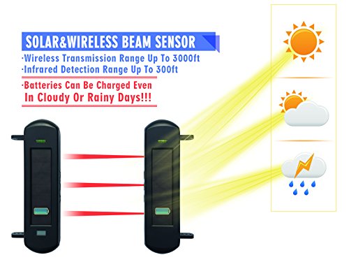 -. Binding : Electronics -. Brand : HTZSAFE -. EAN : 0605244294682 -. Feature : Solar Wireless Photoelectric Beam Sensor / Battery Powered And Solar Charged(Requires No Wiring) / Infrared Detection Range Up To 300 feet / Wireless Transmission Range Up To 3000 feet / The Receiver Total Has 4 Wireless Zones -. Label : HTZSAFE -. Manufacturer : HTZSAFE -. Model : MFR&T001Q3+(KIT) -. MPN : MFRQ3+ -. PackageQuantity : 1 -. PartNumber : MFRQ3+ -. ProductGroup : Photography -. ProductTypeName : SURVEILANCE_SYSTEMS -. Publisher : HTZSAFE -. Studio : HTZSAFE -. Title : HTZSAFE Solar Wireless Driveway Alarm Perimeter Alert System (DIY Alarm System For Home And Business Security) Break Beam Alarm Kit -. UPC : 605244294682