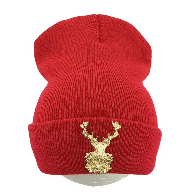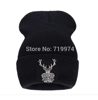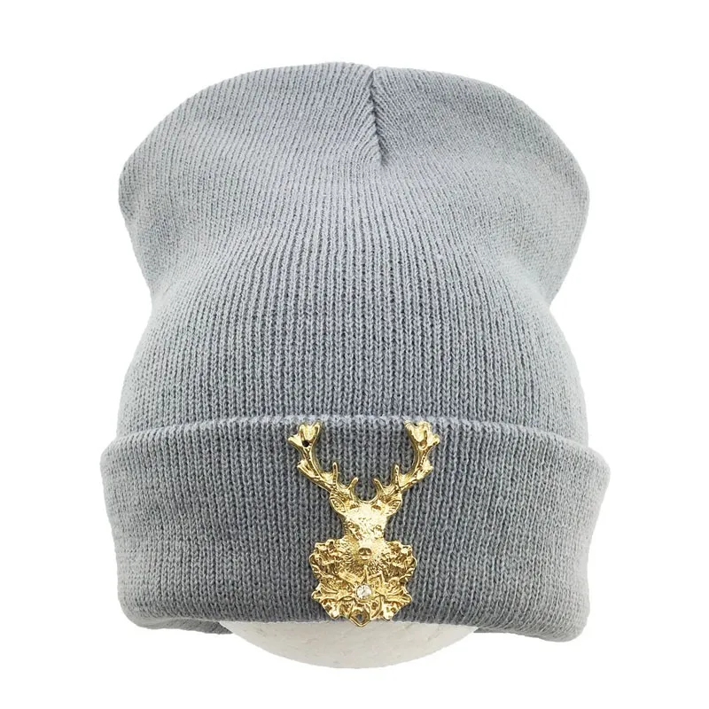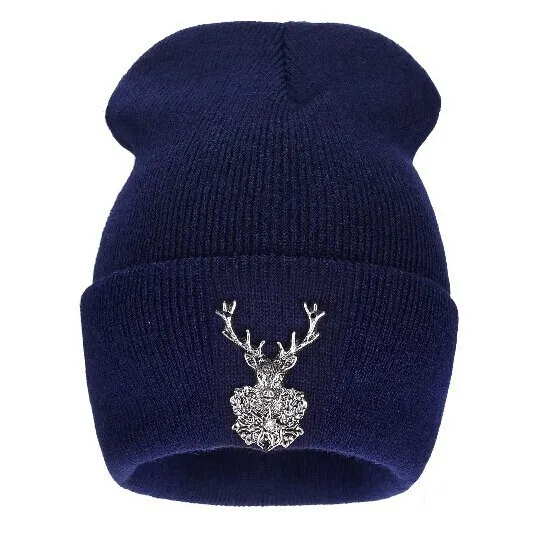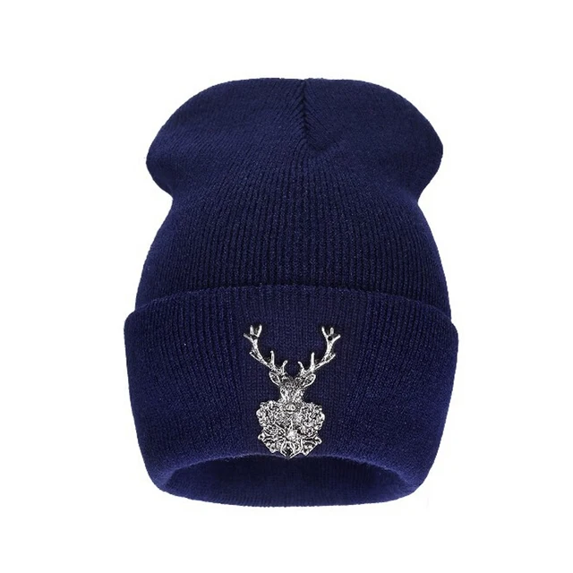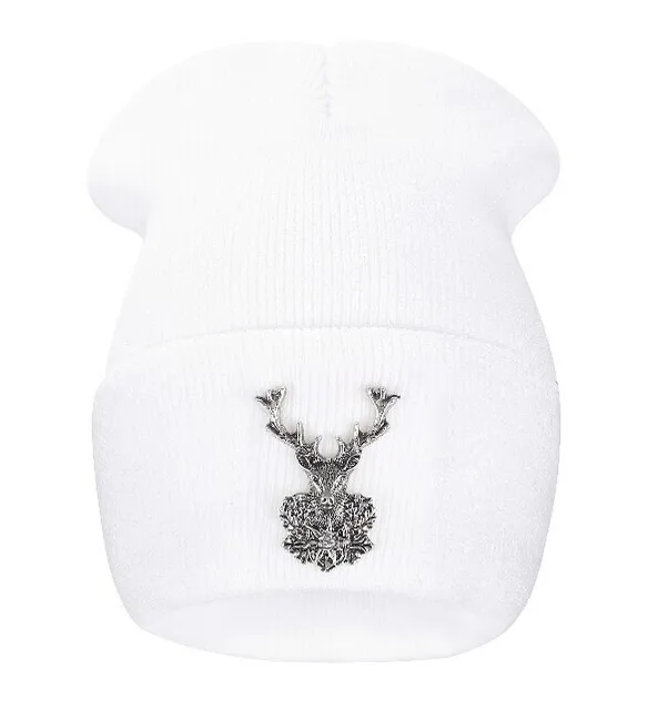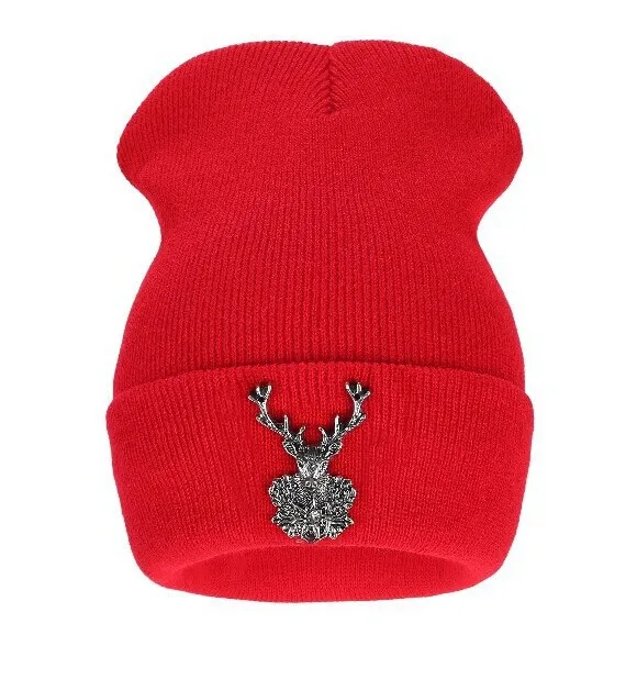 | [해외]2017 새로운 뜨개질 겨울 울 아크릴 브랜드 Skullies 비니 힙합 따뜻한 모자 금속 새끼 사슴 장식 여성 크리스마스 |