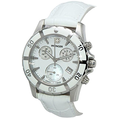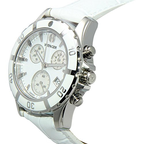 LADIES 36MM WENGER 70748 WHITE MOP DIAL CERAMIC BEZEL CHRONOGRAPH WATCH