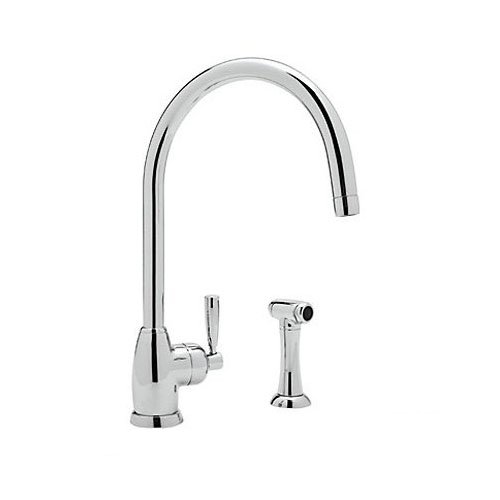 Rohl U.4846LS-APC-2 Perrin and Rowe Contemporary Mimas Single Hole Single Lever Kitchen Faucet with Sidespray and C Spout, Polished Chrome