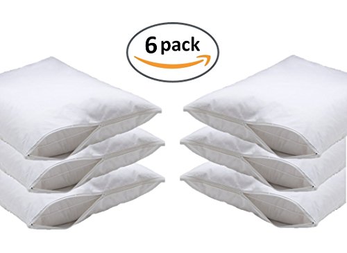 DELUXE Vinyl Pillow Protector with Zipper, Pillow Covers- 6 Pack