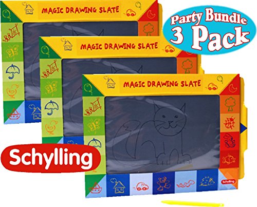 -. Feature : Party Favor Bundle Includes 3 Schylling Magic Slate Drawing Boards! / The perfect drawing pad for the car! / The magic drawing slate provides endless drawing fun! Draw with the special pen, then simply pull the handle out to clean the slate and start again! / Perfect for schools, party games, special needs, birthday gifts, daycare, office fun, travel and so much more! / For Ages 3 and up - Each Measures 10.25 x 7.5 x .37