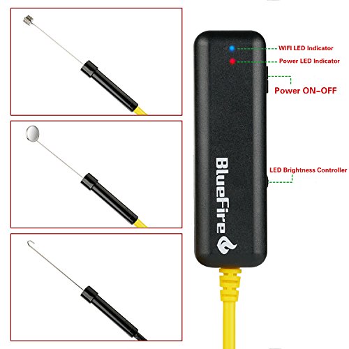 BlueFire Semi-rigid Flexible Wireless Endoscope IP67 Waterproof WiFi Borescope 2 MP HD Resolutions Inspection Camera Snake Camera for Android and iOS Smartphone, iPhone, Samsung, iPad, Tablet (33FT)