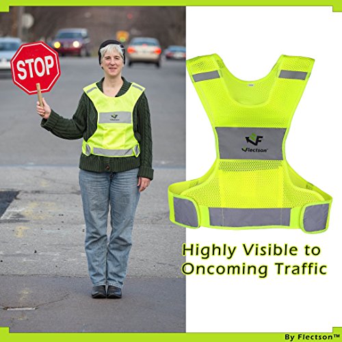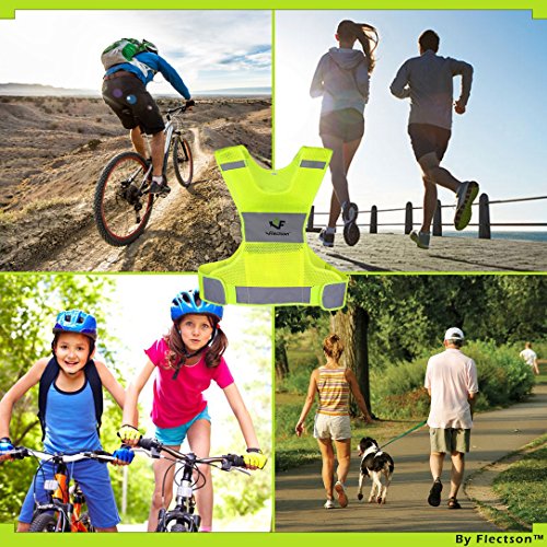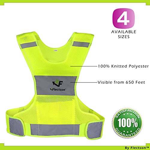 Flectson™ Reflective Vest for Running or Cycling (Women and Men, with Pocket, Gear for Jogging, Biking, Motorcycle, Walking)(Large)