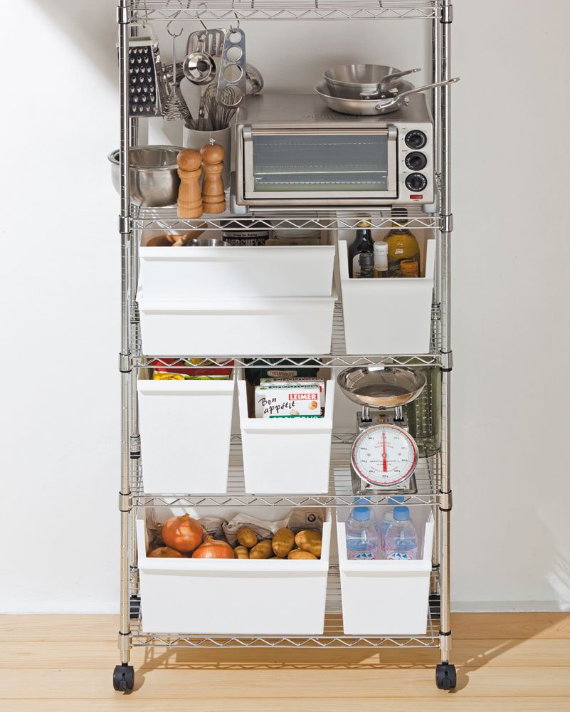 If the open side is on the front, the contents are visible and the stock situation of the ingredients is easy to understand