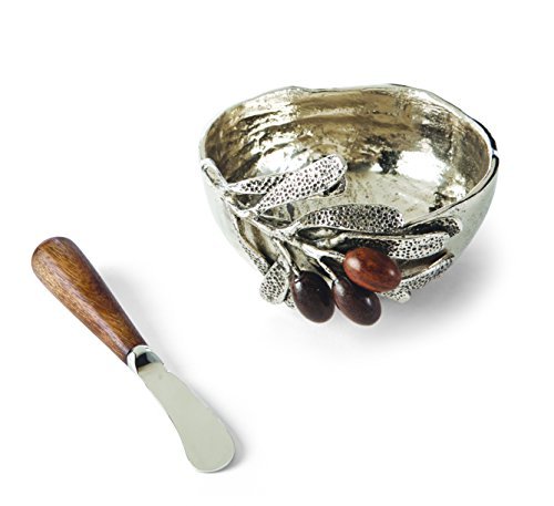 - Metal dip cup features cast aluminum olive branch detail and mango wood olives. Arrives gift packaged with mango wood spreader.
