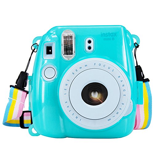 Fujifilm Instax Mini 8 / Mini 8+ / Mini 9 Crystal Case - Wolven Crystal Camera Case With Adjustable Rainbow Shoulder Strap for Fujifilm Instax Mini 8 / Mini 8+ / Mini 9 Instant Camera - Mint Clear