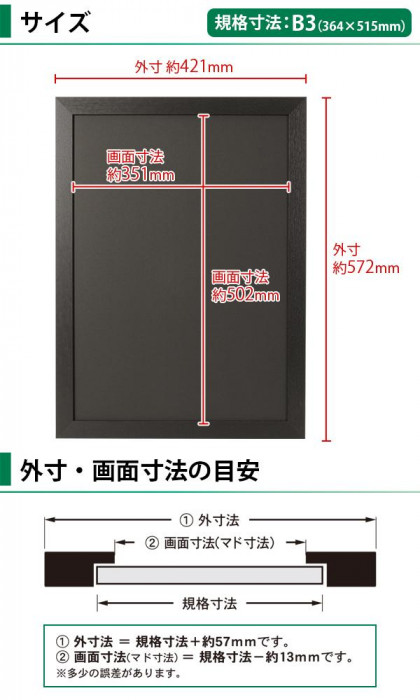 フラットな形状のスタンダードなアートフレームです。自然な風合いの木目調が落ち着いた雰囲気を演出します。 製造国:日本 素材・材質:フレーム:MDF樹脂フィルム貼加工、裏板:キャンバスボード、表面フィルム:PET 仕様:グリーン購入法適合商品 付属品:吊りヒモ(135cm)×1 ※サプライヤー直送品 ご注文後3~4営業日後の出荷となります【商品名】ARTE(アルテ) ニューアートフレーム B3(364×515mm) ブラック NA-B3-BK