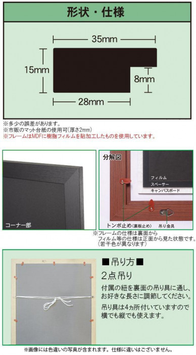 素材・材質フレーム:MDF樹脂フィルム貼加工、裏板:キャンバスボード、表面フィルム:PET