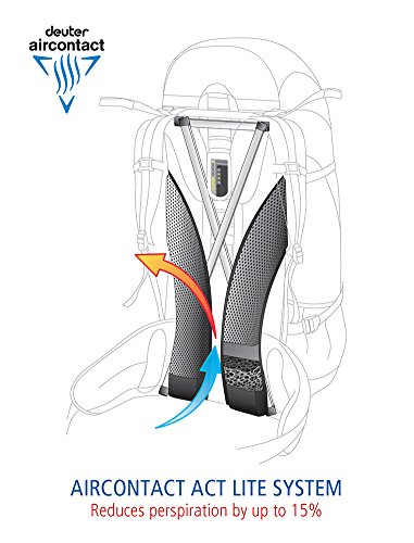 Maximum Ventilation - Deuter's innovative AirContact ventilation back system delivers a body-hugging fit paired with unmatched breathability; The large open pore structure of the AirContact pads performs a pump effect, whereby every movement prompts the exchange of air moving warmth and moisture away from the body; The result: 15% less perspiration than with other body-contour packs