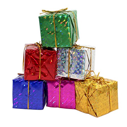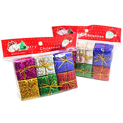 Lot of 24 Miniature 2" Assorted Foil Gift Boxes for Christmas & Holiday Decorating.
