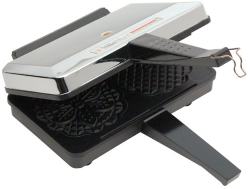 Makes two 5-inch pizzelles in 30 seconds