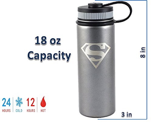 Batman 18oz Stainless Steel Double Wall Vacuum Insulated Water Bottle is guarantee not to Sweat and keep your Cold drink up to 24 hours and Hot liquid up to 12 hours. Our Medium mouth water bottle is made from the Highest Stainless steel available to make sure your drink stays pure, natural, and odor free while maintaining its temperature.