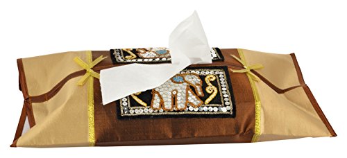 Sharada International Silk Tissue Box Cover (37 Cm X 22 Cm X 0.2 Cm, Brown)