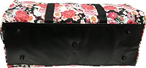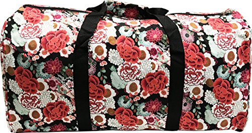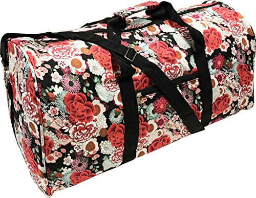 Product Description 22" Duffle Bag ?Silver pewter hardware. ?Rubber feet. ?Adjustable detachable shoulder strap. ?One exterior front pocket. ?Main entrance zipper closure. ?Hand carry handles are double top with velcro conjoiner. ?Material: Heavy duty 600 denier polyester. ?Interior polyester lining. ?Dimensions: 22-inches (L) x 11-inches (H) x 10-inches (D) ?Weight: 1.4 lbs. 0