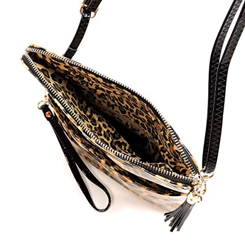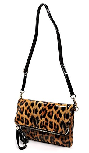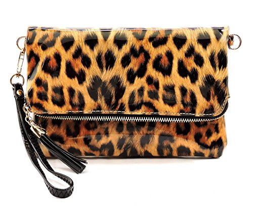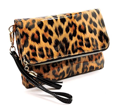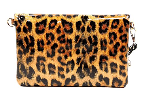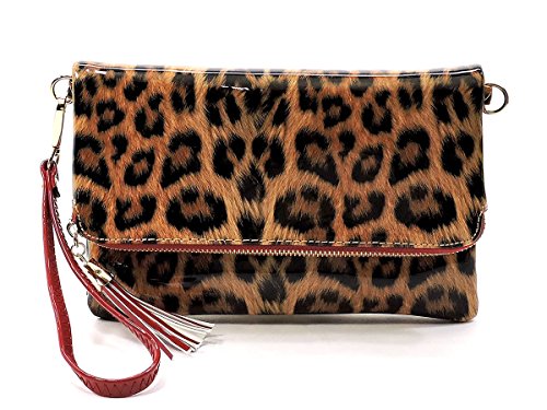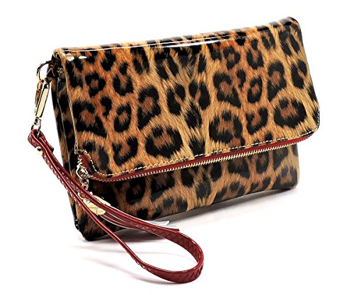 (Elphis)/Accessories/Handbags/DIRECT FROM USA/Elphis Leopard Glossy Vegan Bifold Clutch Crossbody Bag Shinny PU Purse