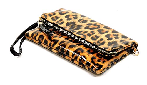 Product DescriptionShinny Patent Faux Vegan Leather Bifold Clutch Made of High Quality Faux vegan leather(PU leather) Gold-tone hardware Magnetic snap Zip closure Detachable Shoulder Strap (Adjustable : 24"~48") Quality polyester fabric lining interior Interior lining with wall zip pocket Measure 9" length, 1" width, 6" height 0
