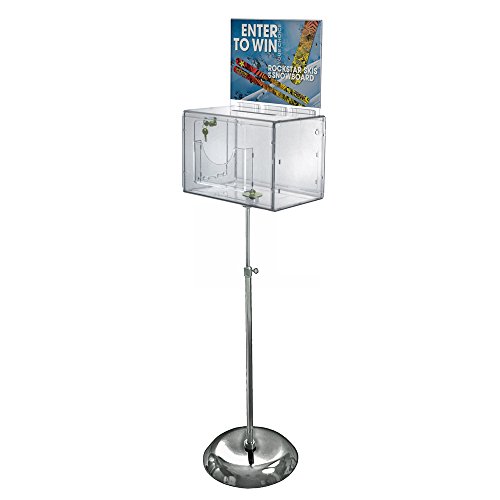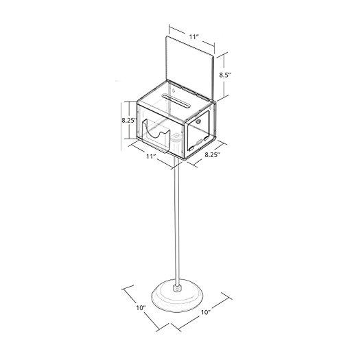 Azar Displays 206325-CLR 11" W x 8.25" D x 8.25" H X-Large Clear Suggestion Box with Pocket, Lock & Keys on Pedestal