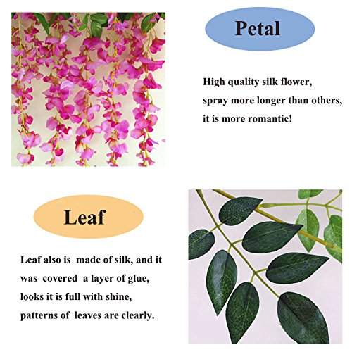 - Beautiful and elegant flowers vines was made of high quality silk cloth, every bloom is soft, natural-looking, colored- looks and feel just like real flowers, flowers are full and rich, leaf texture clear, shiny surface of the blade.