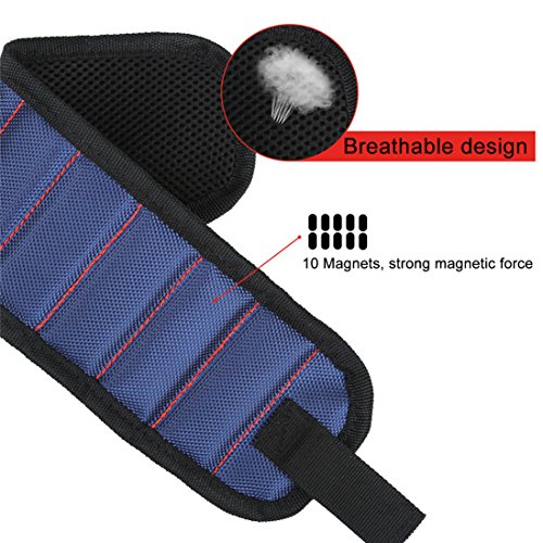 - Convenient and Practical - 10 strong magnets embedded in each wristband surround almost entire wrist for holding screws, nails, bolts, washers, drill bits. It is your best solution to having screws and nails at hand while working.