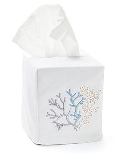 Jacaranda Living Linen/Cotton Tissue Box Cover, Coral, Duck Egg Blue