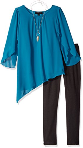 Amy Byer Big Girls' Tulip Sleeve with Asymmetrical Hem and Legging, Peacock, Medium
